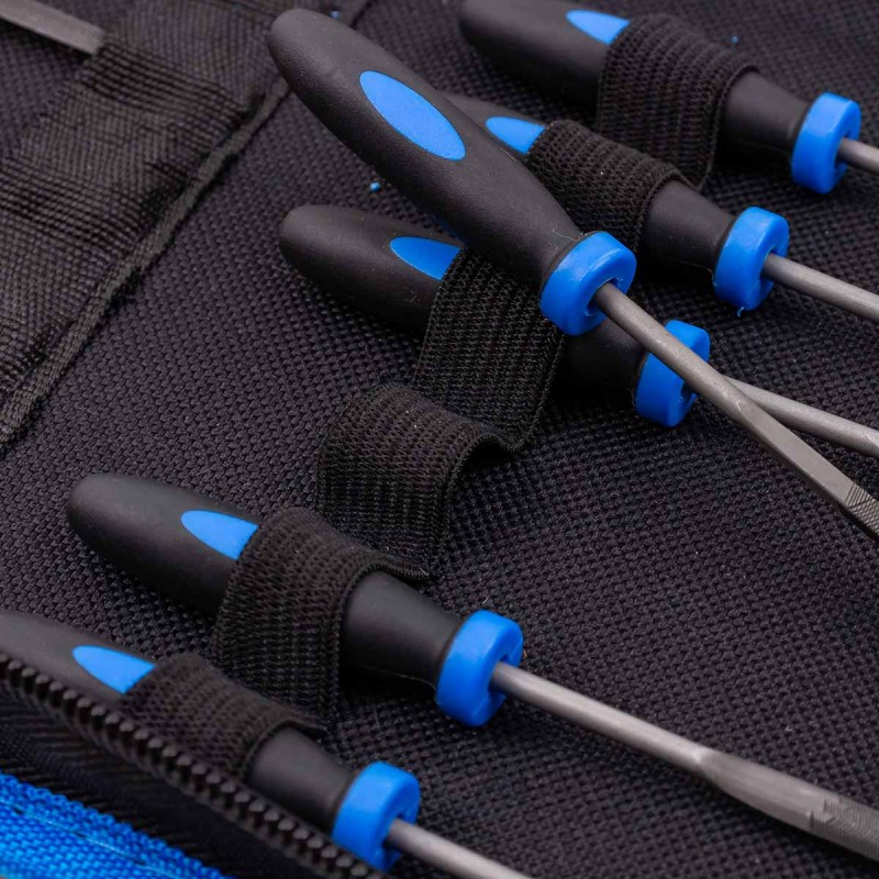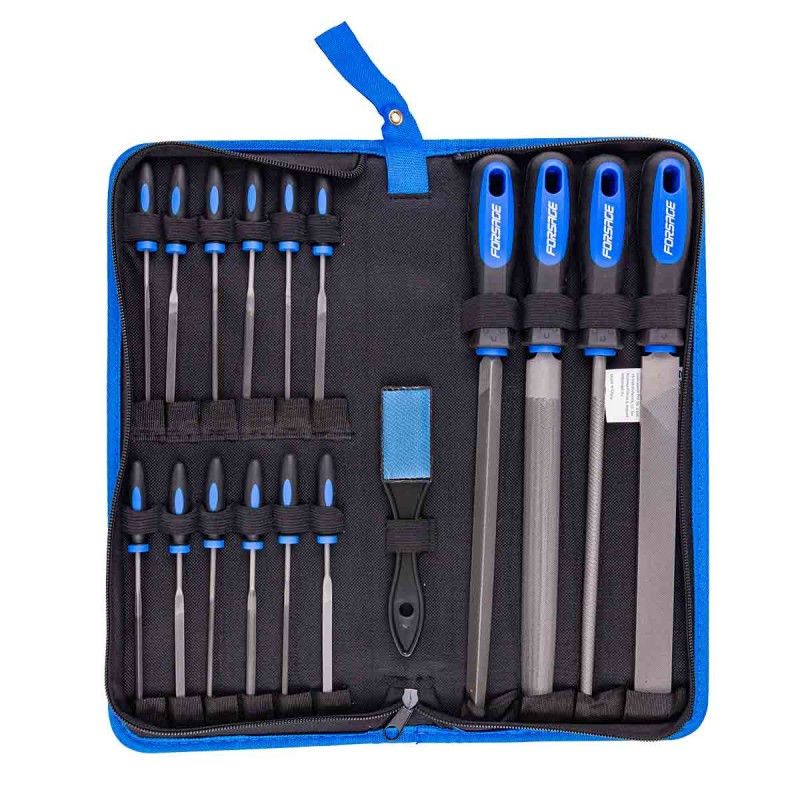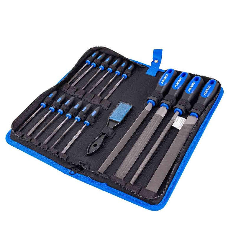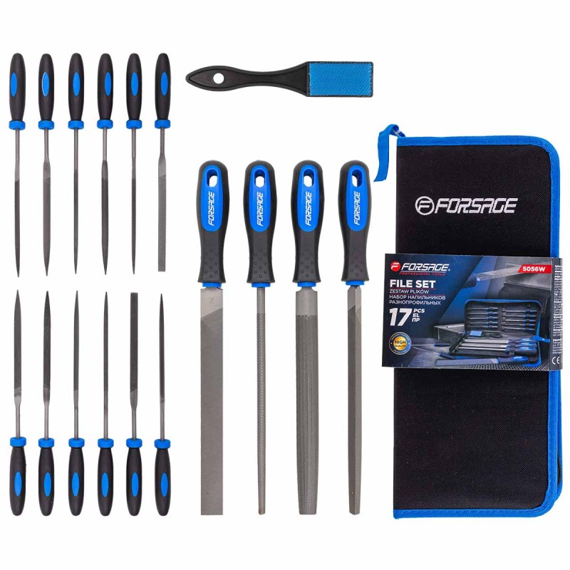 F-5056W Набор напильников и надфилей разнопрофильных, 17пр (плоск, треуг, квадр, круг, полукруг, L-100мм,L-200мм) в чехле