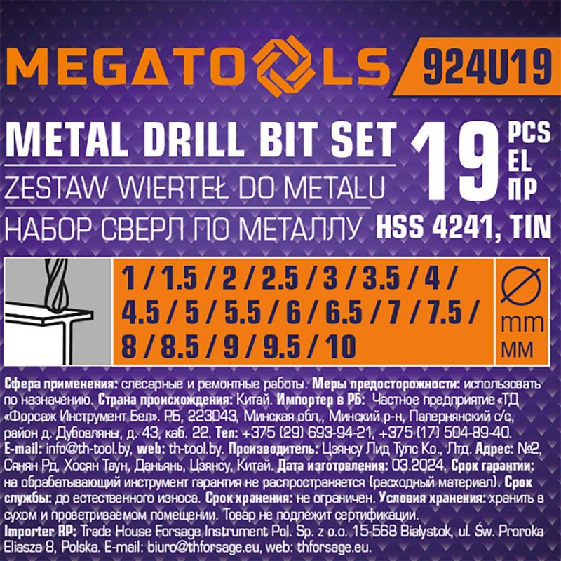 MT-924U19 Сверла по металлу, набор 19пр. (1-10мм)
