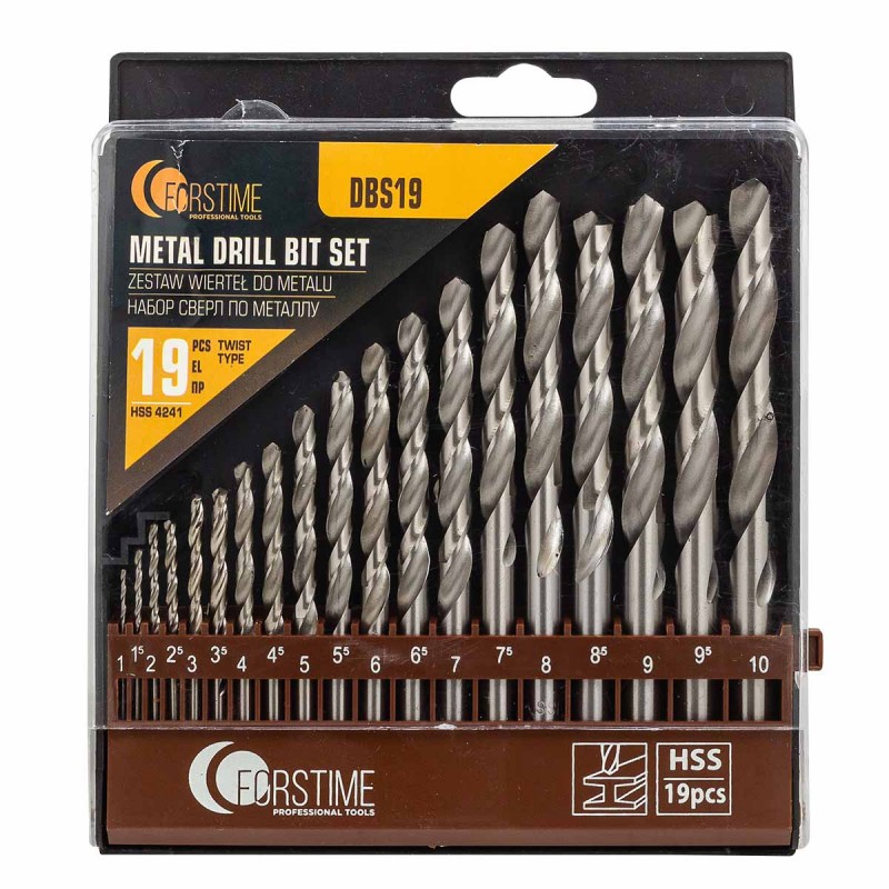 FT-DBS19 Сверла по металлу, набор 19пр. (1-10мм)