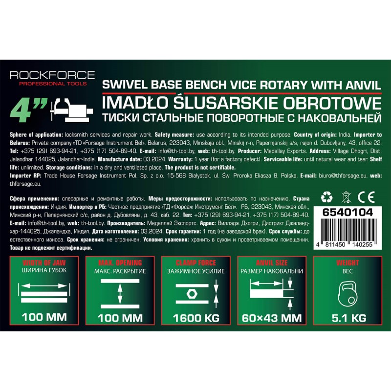RF-6540104 Тиски стальные поворотные с наковальней 4''(100мм)