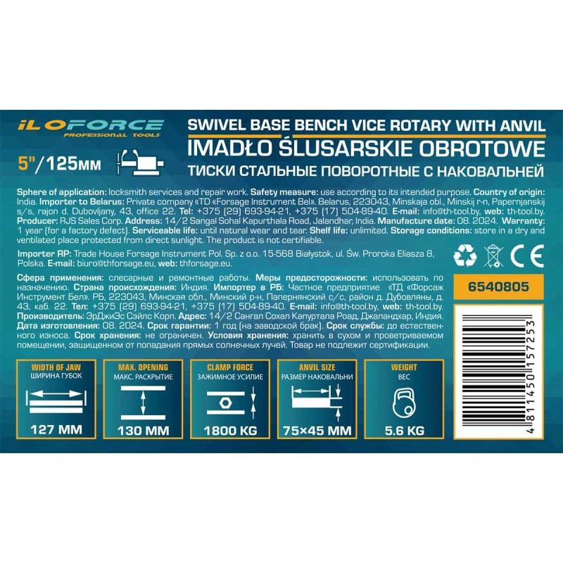 IF-6540805 Тиски стальные поворотные с наковальней 5''(125мм)
