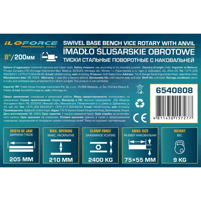 IF-6540808 Тиски стальные поворотные с наковальней 8''(200мм)