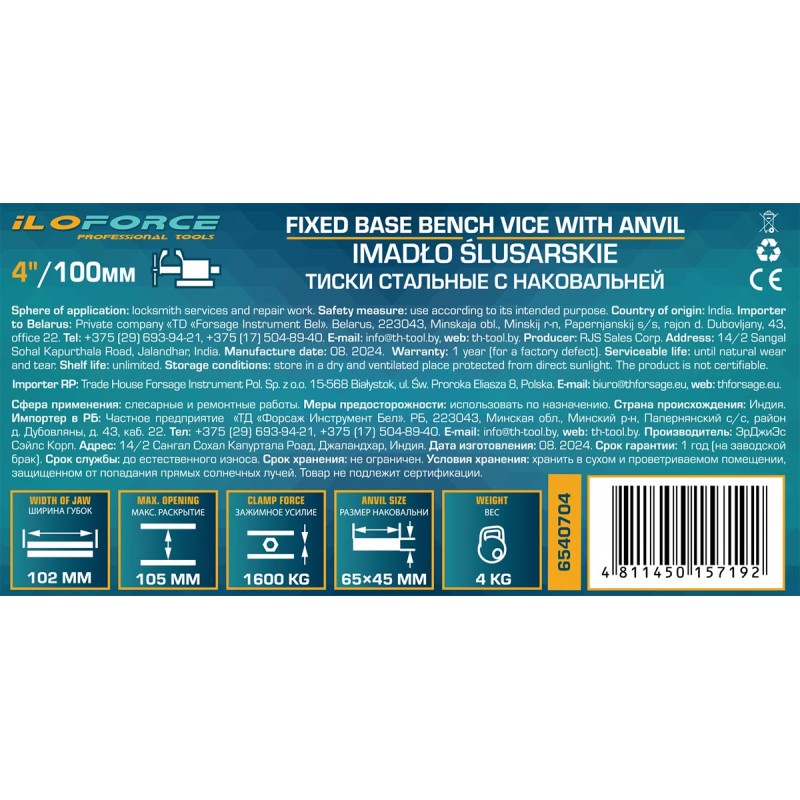 IF-6540704 Тиски стальные с наковальней 4''(100мм)