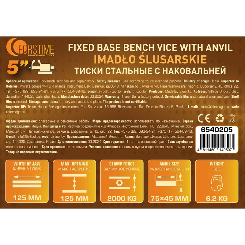 FT-6540205 Тиски стальные с наковальней 5''(125мм)