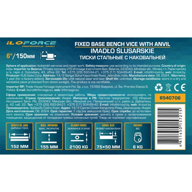 IF-6540706 Тиски стальные с наковальней 6''(150мм)