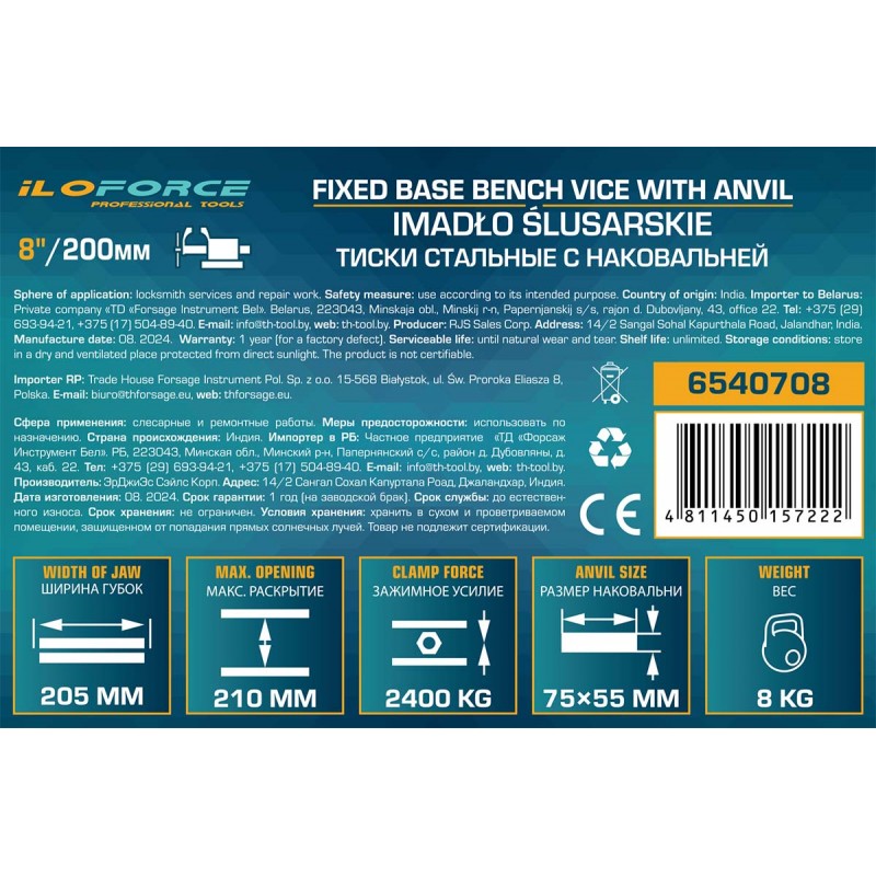 IF-6540708 Тиски стальные с наковальней 8''(200мм)