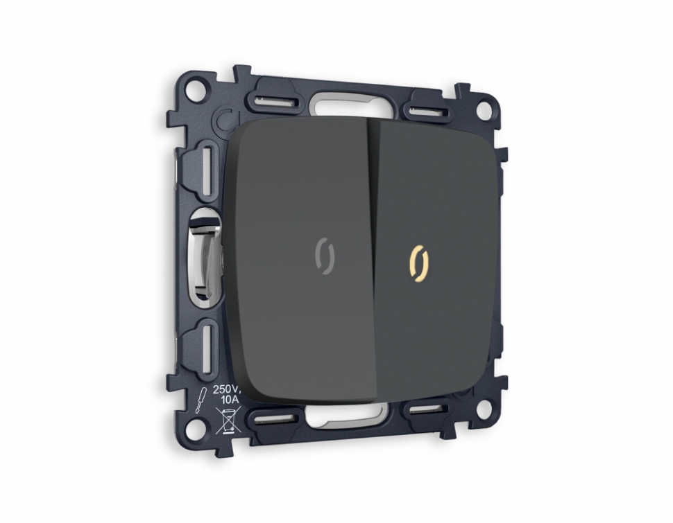 Выключатель 2-клавишный с подсветкой 3200K Ambrella Volt (Графит мягкое касание) QUANT OMEGA 756117