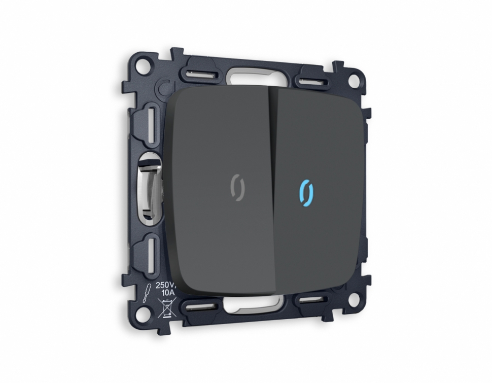 Выключатель 2-клавишный с подсветкой 10000K Ambrella Volt (Графит мягкое касание) QUANT OMEGA 756119