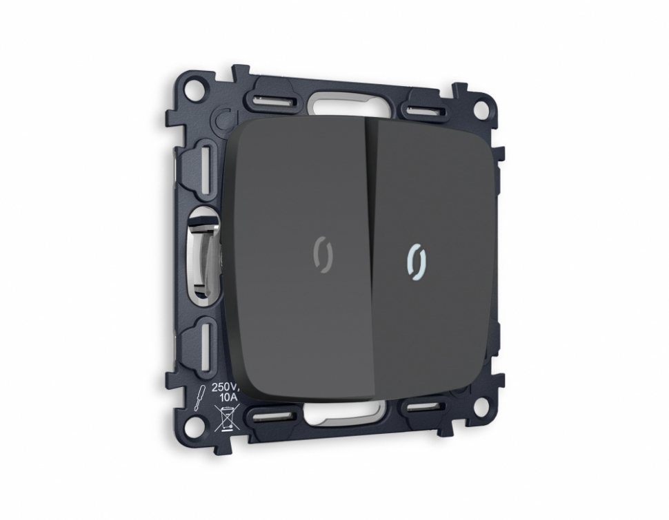 Выключатель 2-клавишный с подсветкой 5600K Ambrella Volt (Графит мягкое касание) QUANT OMEGA 756118