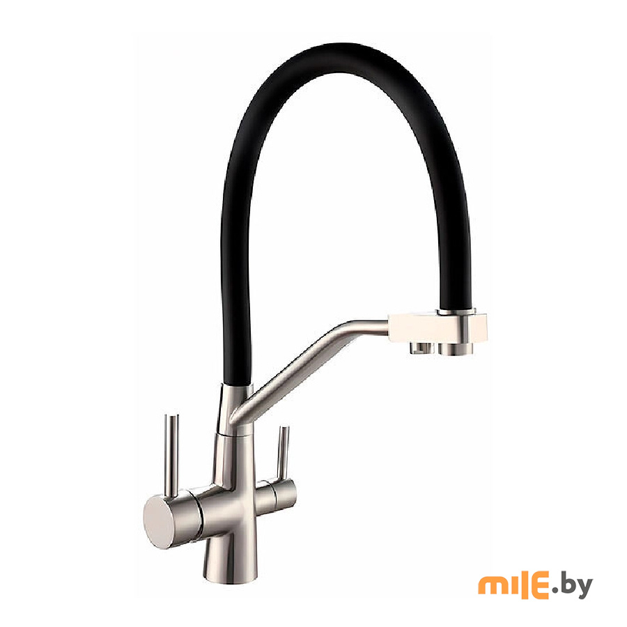 Смеситель для кухни Esko Kitchen K25 B изготовлен из качественной нержавеющей стали. Смеситель имеет канал для фильтрованной воды с отдельным бескорпусным аэратором и ручкой включения, гибкий излив. Картридж керамический 35 мм.