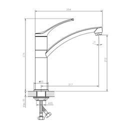 Корпус смесителя из латуни катеории A. Излив поворотный, картридж универсальный 35 мм. Комплектация: пьедестал (металл), крепление FastFix, гибкая подводка 45 см, жесткие удлинители подводки.