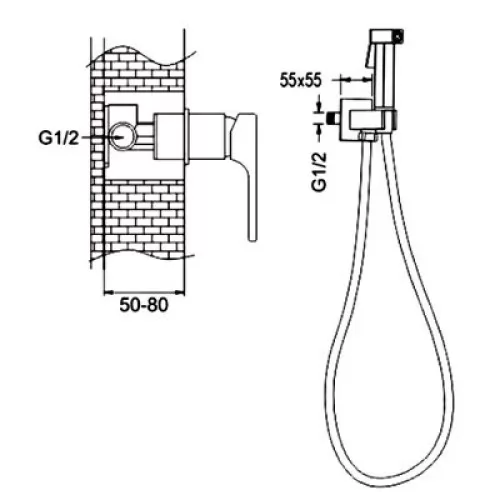 - В комплекте Душевой шланг 100 см, с гигиеническим душем, держатель лейки, комплект отражателей, комплект эксцентриков