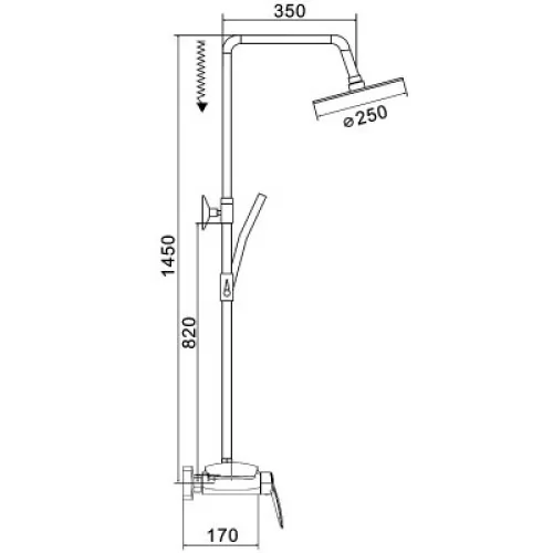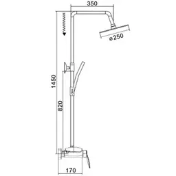 - Состав комплекта с душевой лейкой, с шлангом для душа, верхний душ, душевая стойка, смеситель