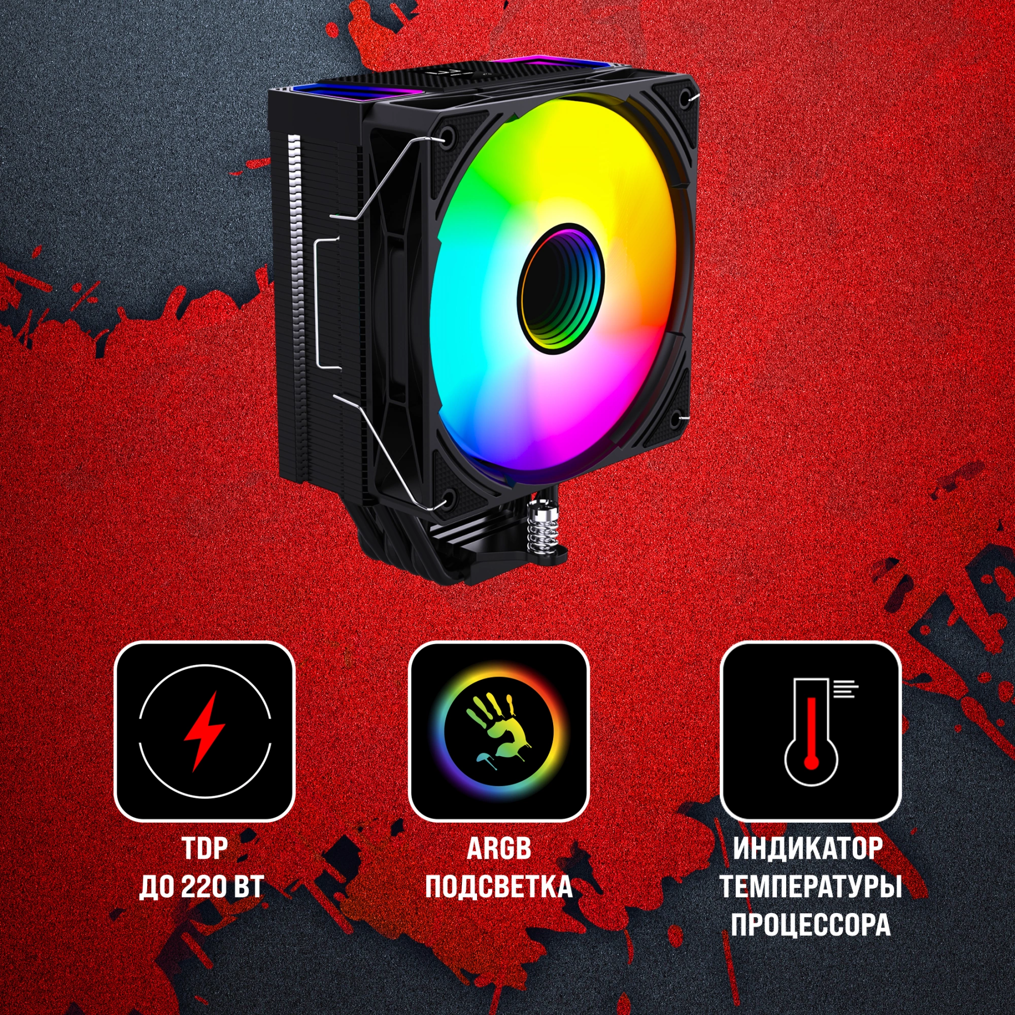 • Особенности ARGB подсветка вентилятора, индикатор температуры процессора 3 pin питание подсветки