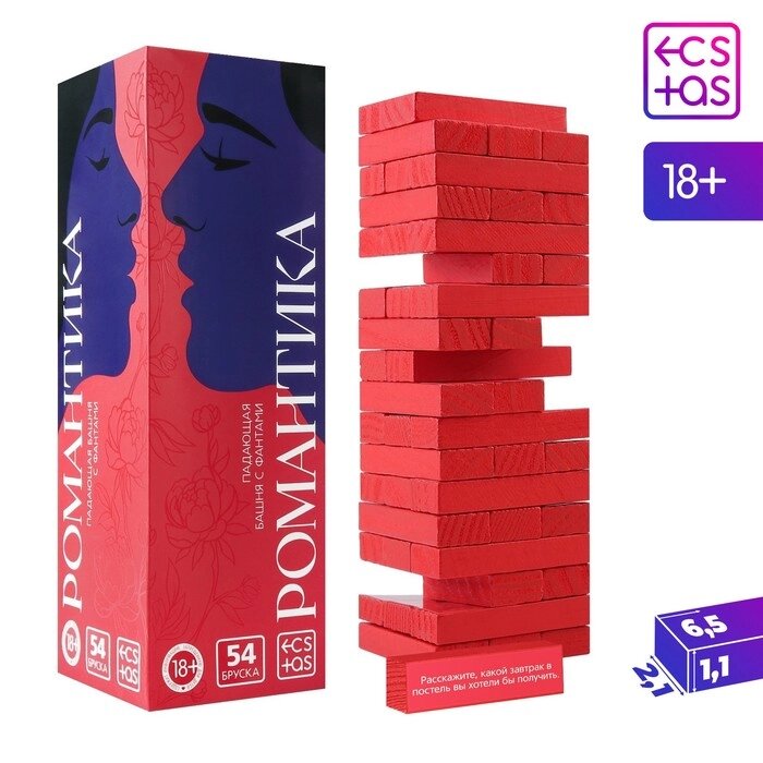 Падающая башня "Романтика" с фантами, 54 бруска, 18+