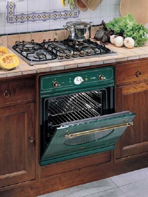 Стильный зеленый духовой шкаф, который работает от газа, оснащен электрическим грилем, который поможет Вам готовить только вкусные и полезные блюда. Устанавливая любой из четырех видов нагрева внутреннего пространства, Вы сможете полностью контролировать работу этого устройства. А безопасность его использования обеспечивает система «Газ контроль».