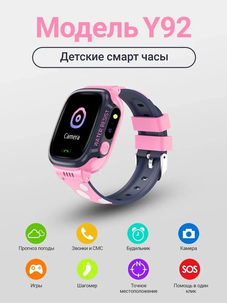 Умные часы для детей Y92 с сим картой и gps. Розовые
