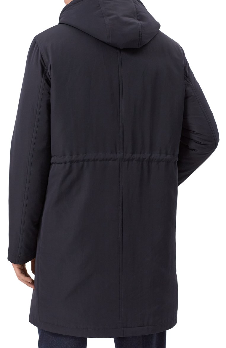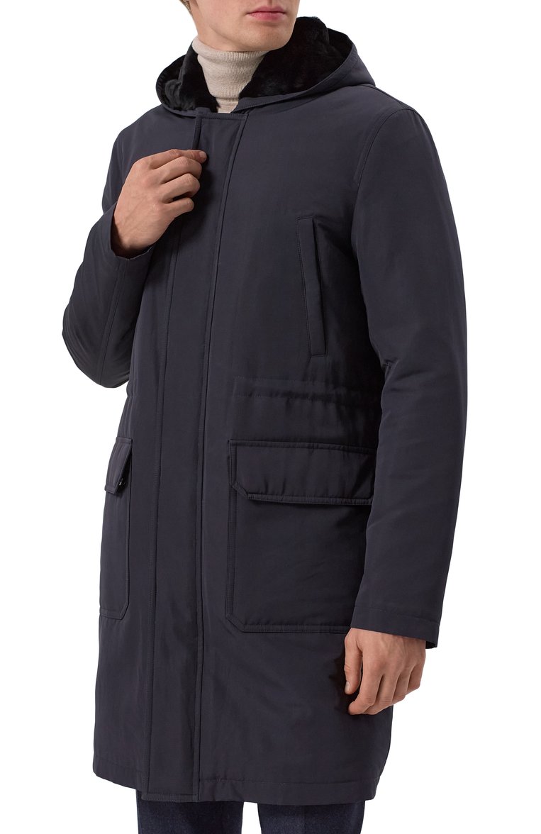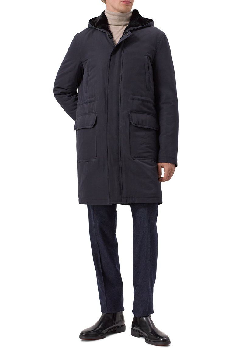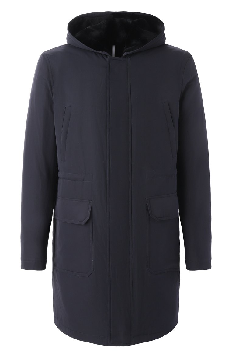 Парку на утином пуху выполнили из микса полиэстера и шелка, а для подкладки использовали мех норки. Модель с капюшоном, четырьмя карманами и внутренней кулиской застегивается молнией и штормовой планкой с кнопками.