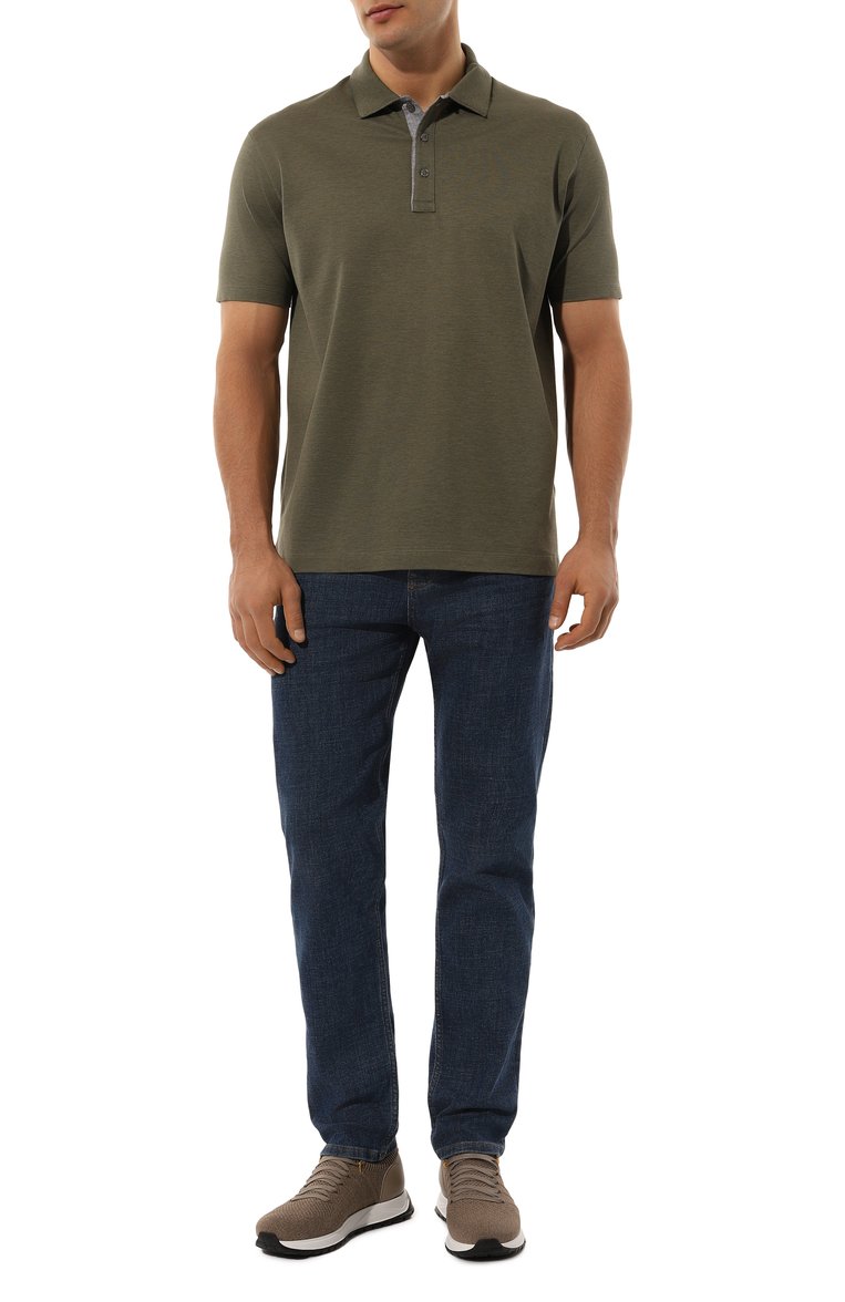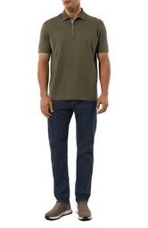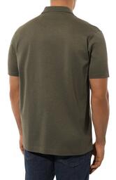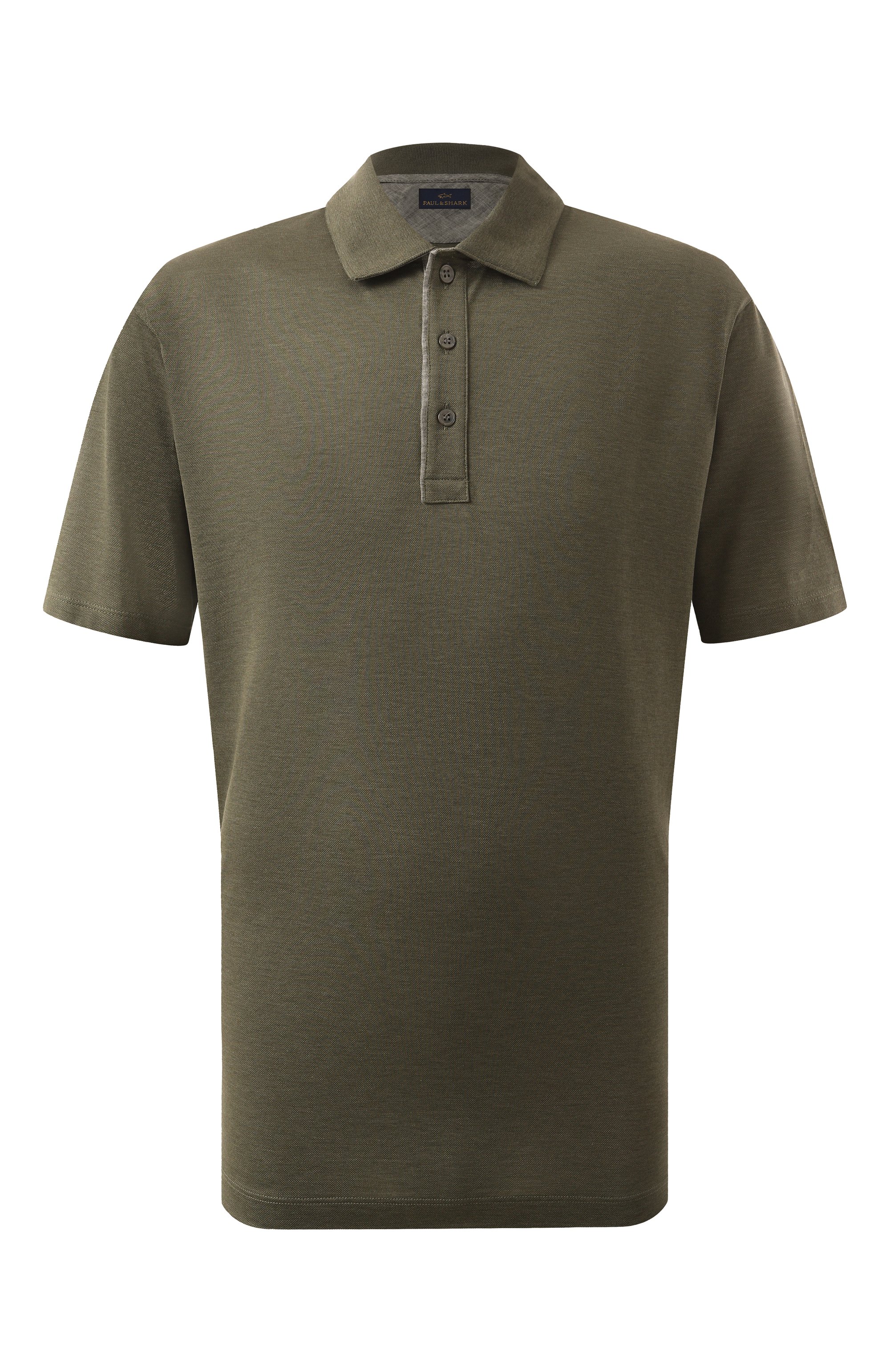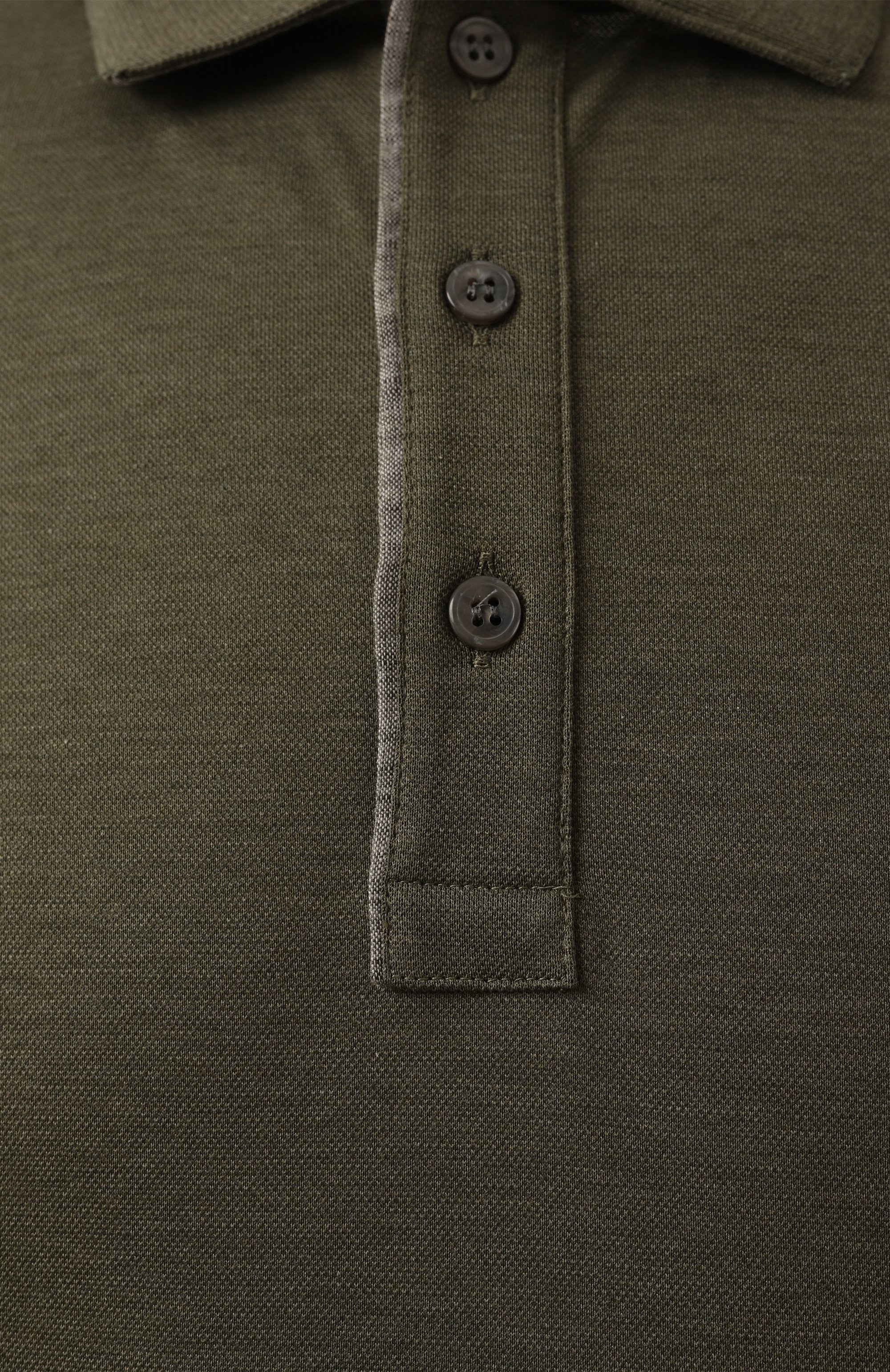 Поло из хлопкового пике застегивается планкой с меланжевой подкладкой и перламутровыми пуговицами. Сзади модель украсили изображением фирменного акульего плавника в тон.