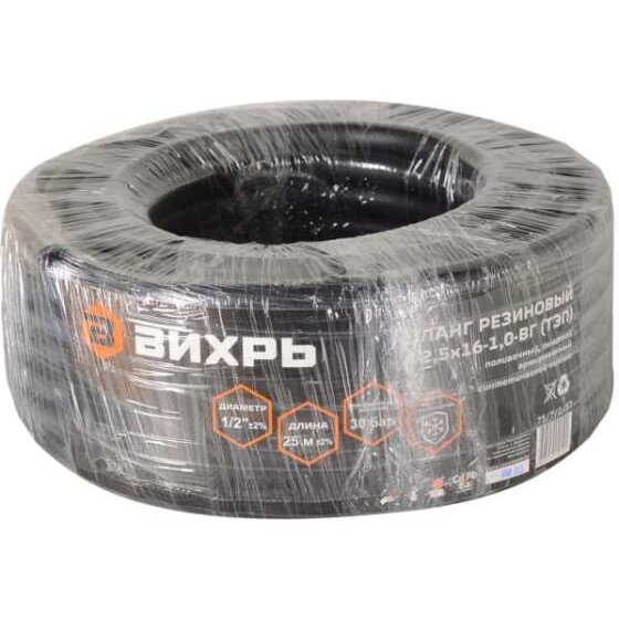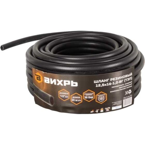 Шланг резиновый армированный Вихрь 73/7/2/37 12,5х16-1,0-ВГ., бухта 25м чёрный ТЭП