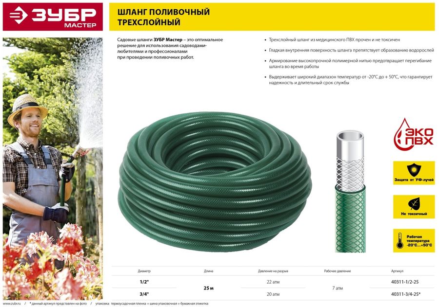 Шланг Зубр 40311-1/2-25 25м поливочный армированный