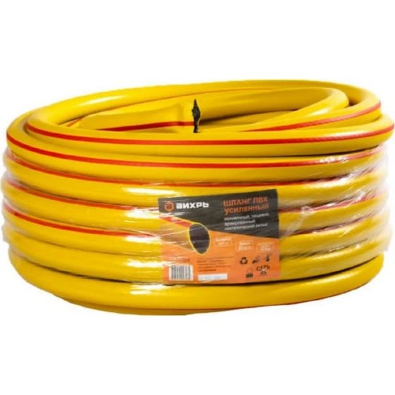 Шланг поливочный Вихрь 73/7/2/4 ПВХ усиленный, пищевой трехслойный армированный 3/4, 25 м (жёлтый)