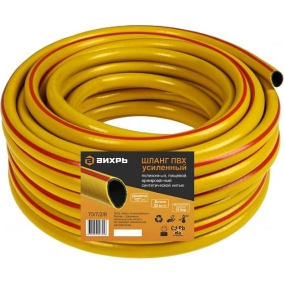 Шланг поливочный Вихрь 73/7/2/6 ПВХ усиленный, пищевой трехслойный армированный 1/2, 25 м (жёлтый)