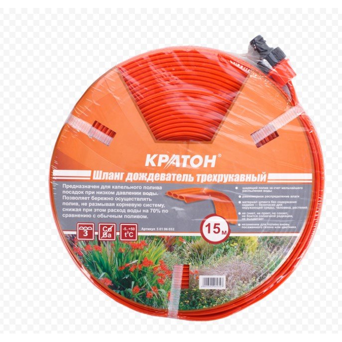 Шланг дождеватель трехрукавный КРАТОН 15м (5 01 06 032)