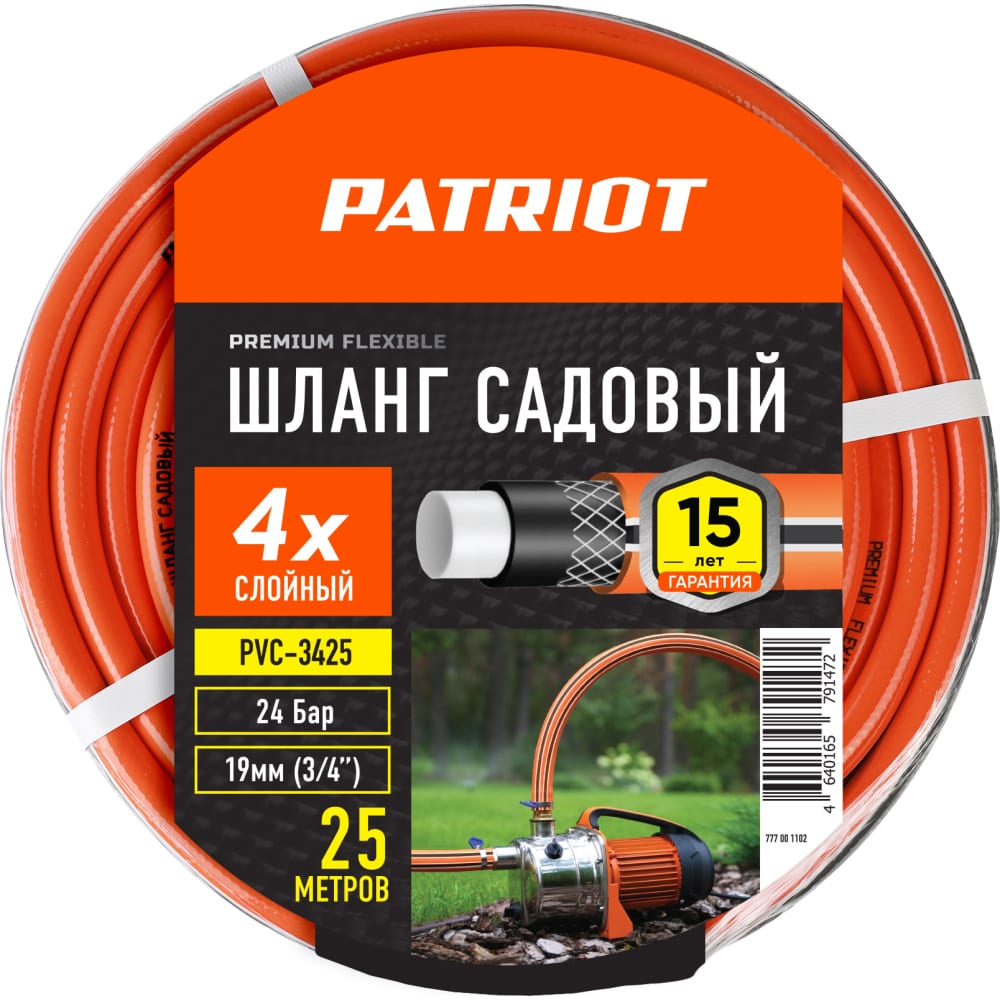 Шланг поливочный PATRIOT PVC-3425 777001102 4слоя, 3/4 , 25м
