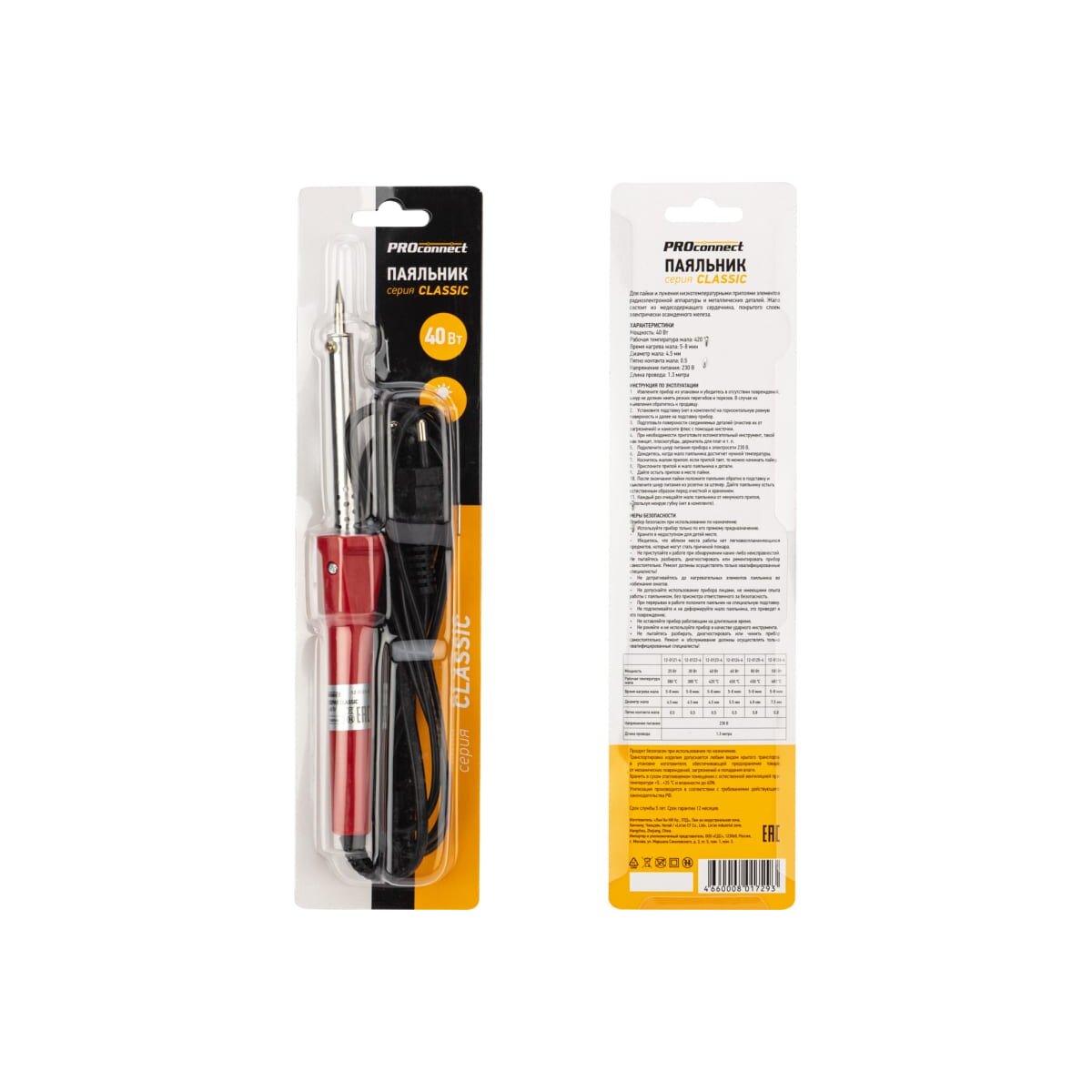 Паяльник PROconnect 12-0123-4 с керамическим нагревателем, долговечное жало 220V/40Вт