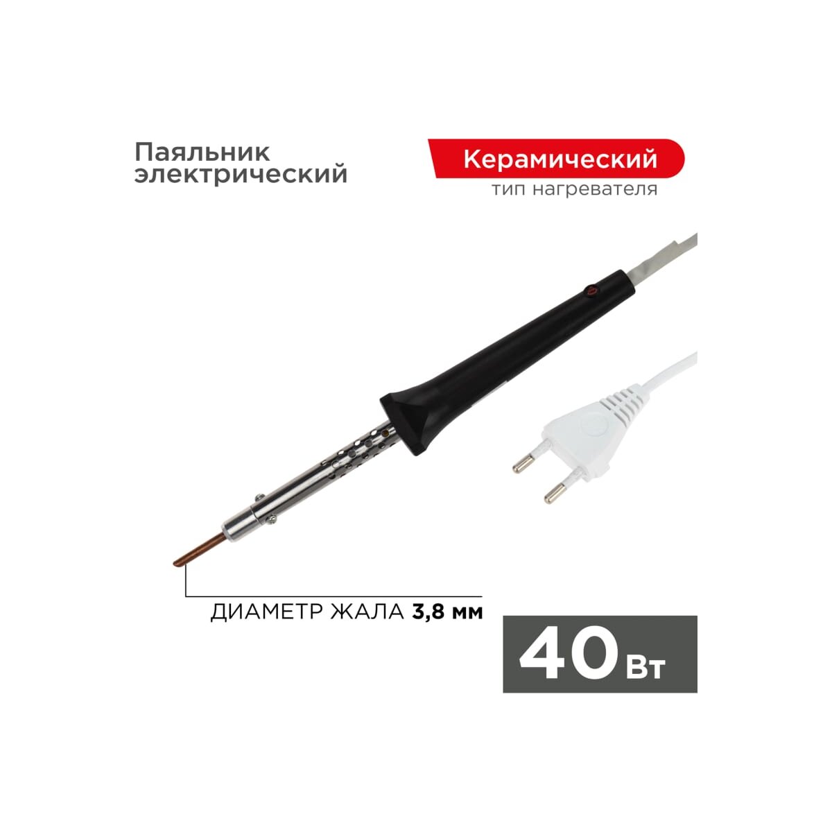 Паяльник Rexant 12-0440 керамический нагреватель, 40Вт, 230В, ЭПСН