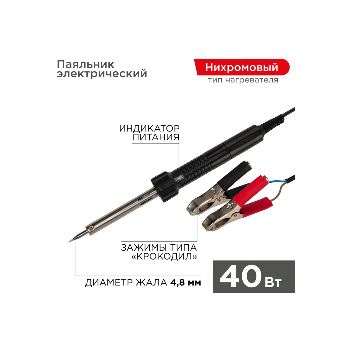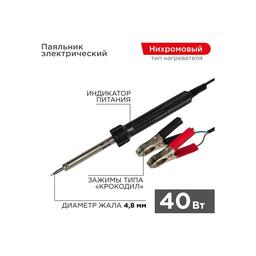 Паяльник Rexant 12-0189 с зажимами крокодил, 12В/40Вт