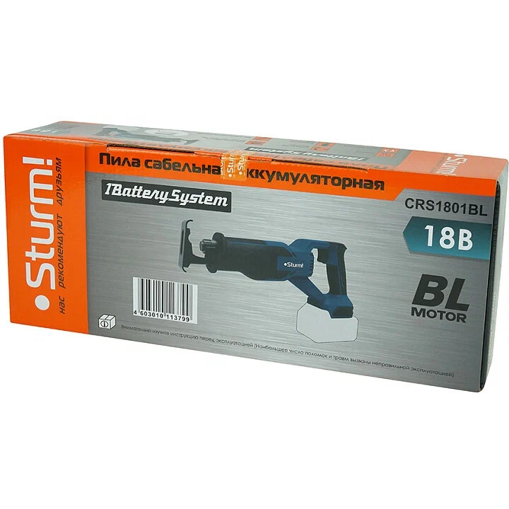 Пила сабельная Sturm! CRS1801BL аккум. б/щ 18 В,1BatterySystem, рез115 мм, без АКБ и ЗУ