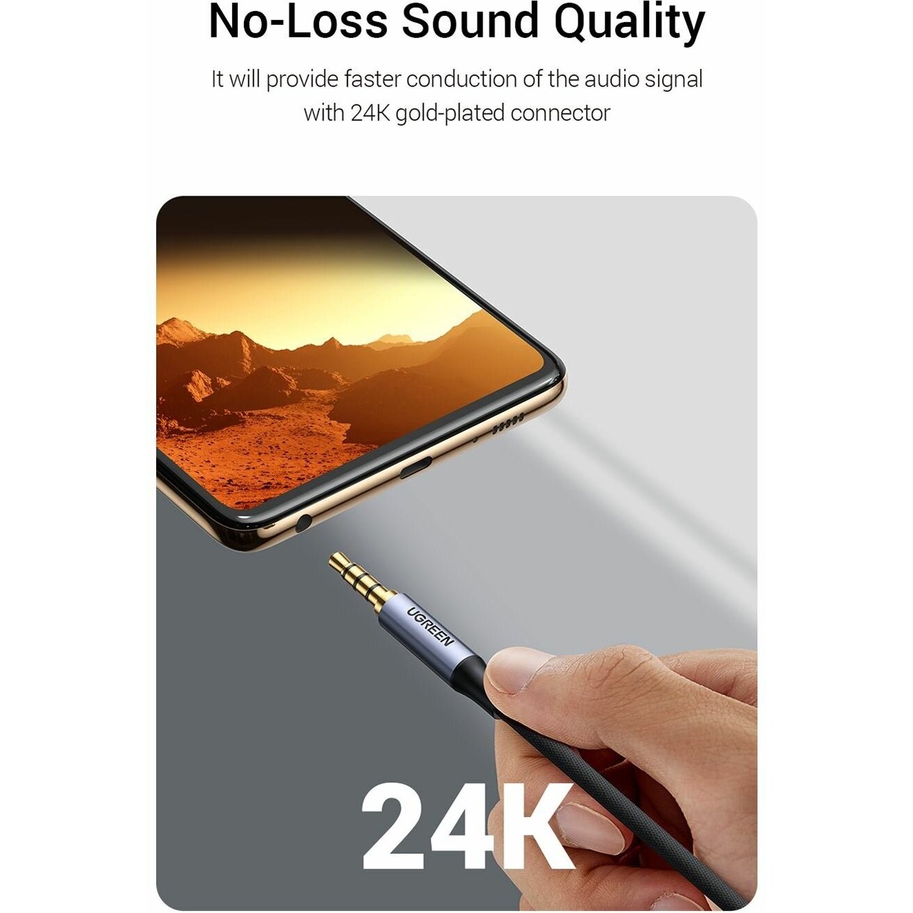 Кабель UGREEN AV183 20497 3.5mm Male to Male 4-Pole Microphone Audio Cable 1.5m Black