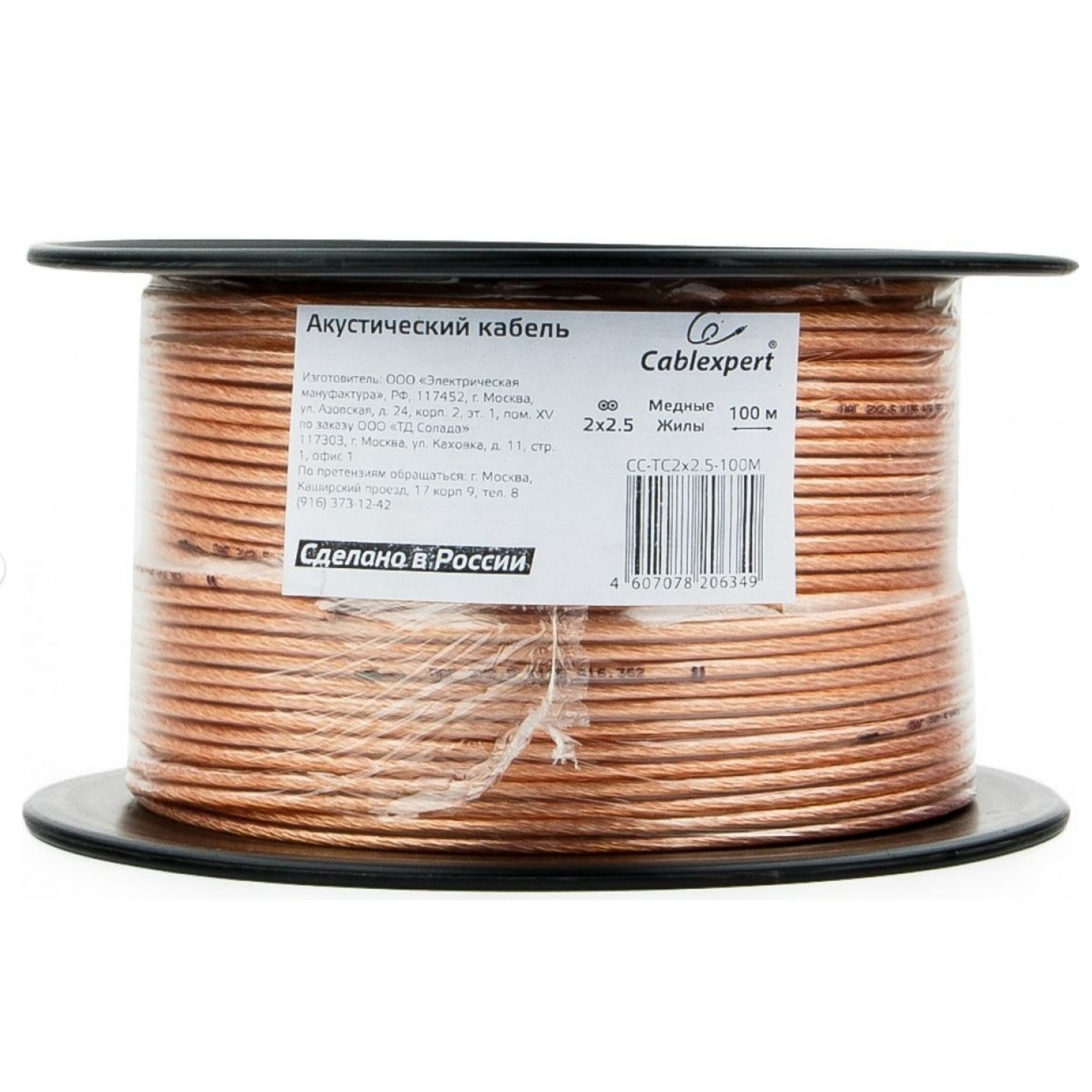 Акустический кабель Cablexpert CC-TC2x25-100M прозрачный 100м