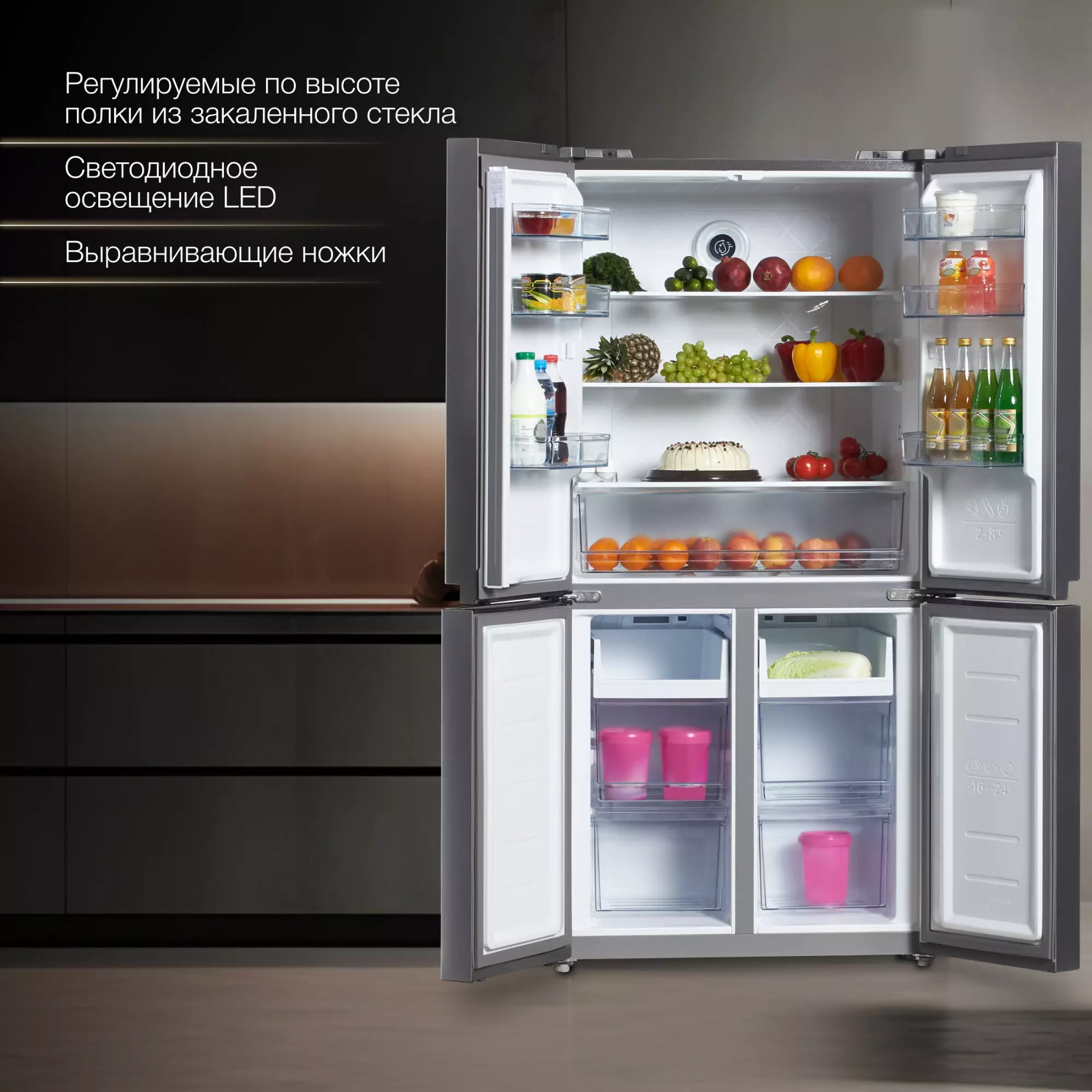 • Индикация открытой двери, температуры