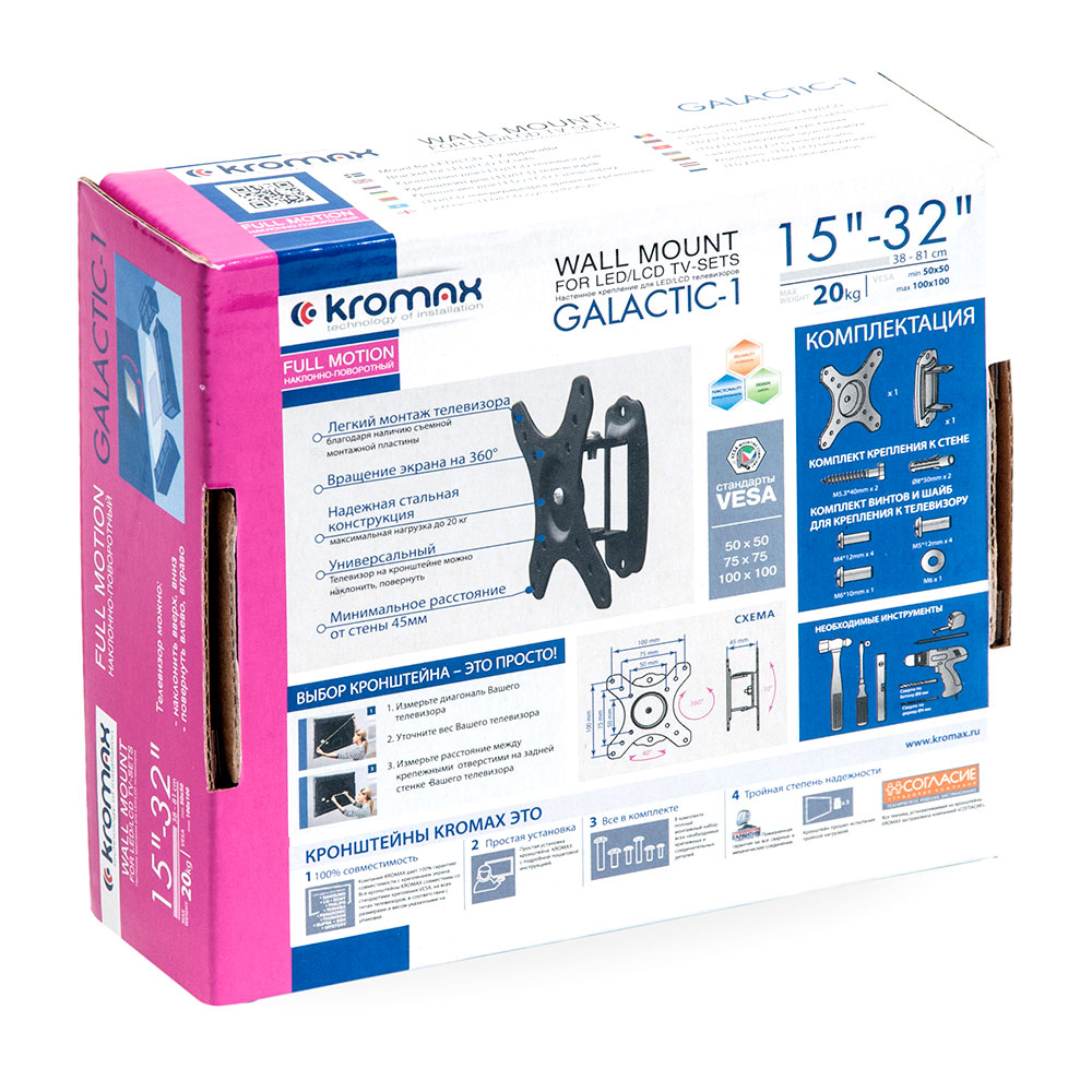 Кронштейн Kromax Galactic-1new Наклонно-поворотный Чёрный