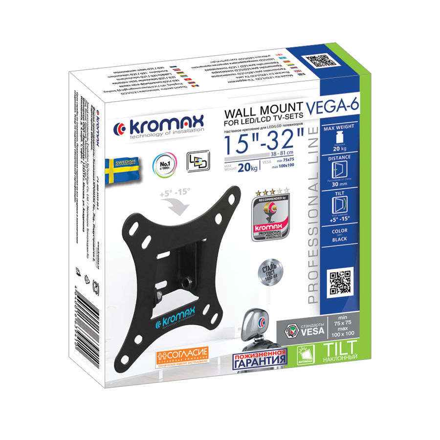 Кронштейн для телевизора Kromax VEGA-6 new черный 15"-32" до20кг наклон