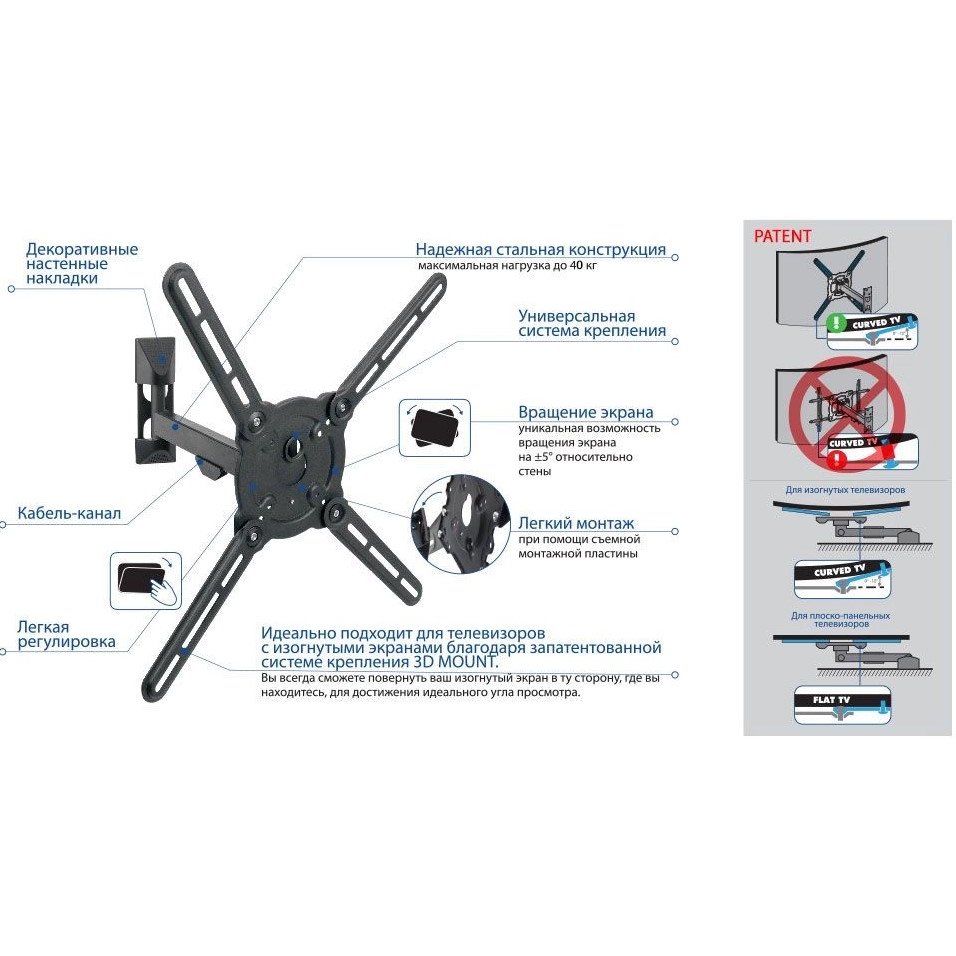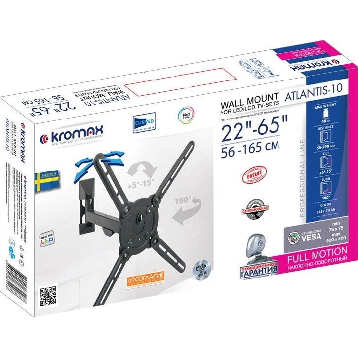 Кронштейн Kromax ATLANTIS-10 серый поворот и наклон
