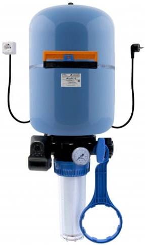 ОписаниеРешение автоматизации-комплексное Джилекс на баке КРАБ 24 предназначено для автоматического управления включением и выключением электронасосов, поддержания заданного давления в системах водоснабжения и предварительной фильтрации воды. Объем гидробака: 24л. Высота: 75см; Ширина: 27см