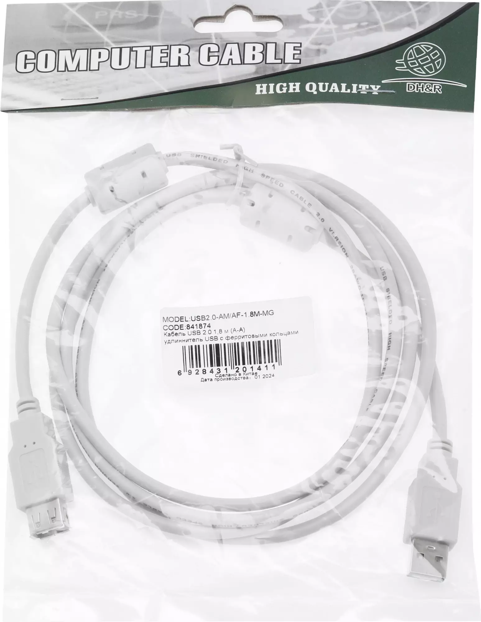 ОписаниеСтандартный кабель-удлинитель для устройств USB 2.0. Может быть использован для увеличения длины кабелей клавиатуры, мыши, Web-камеры, картридера и прочих устройств. Длина 1,8 метра.