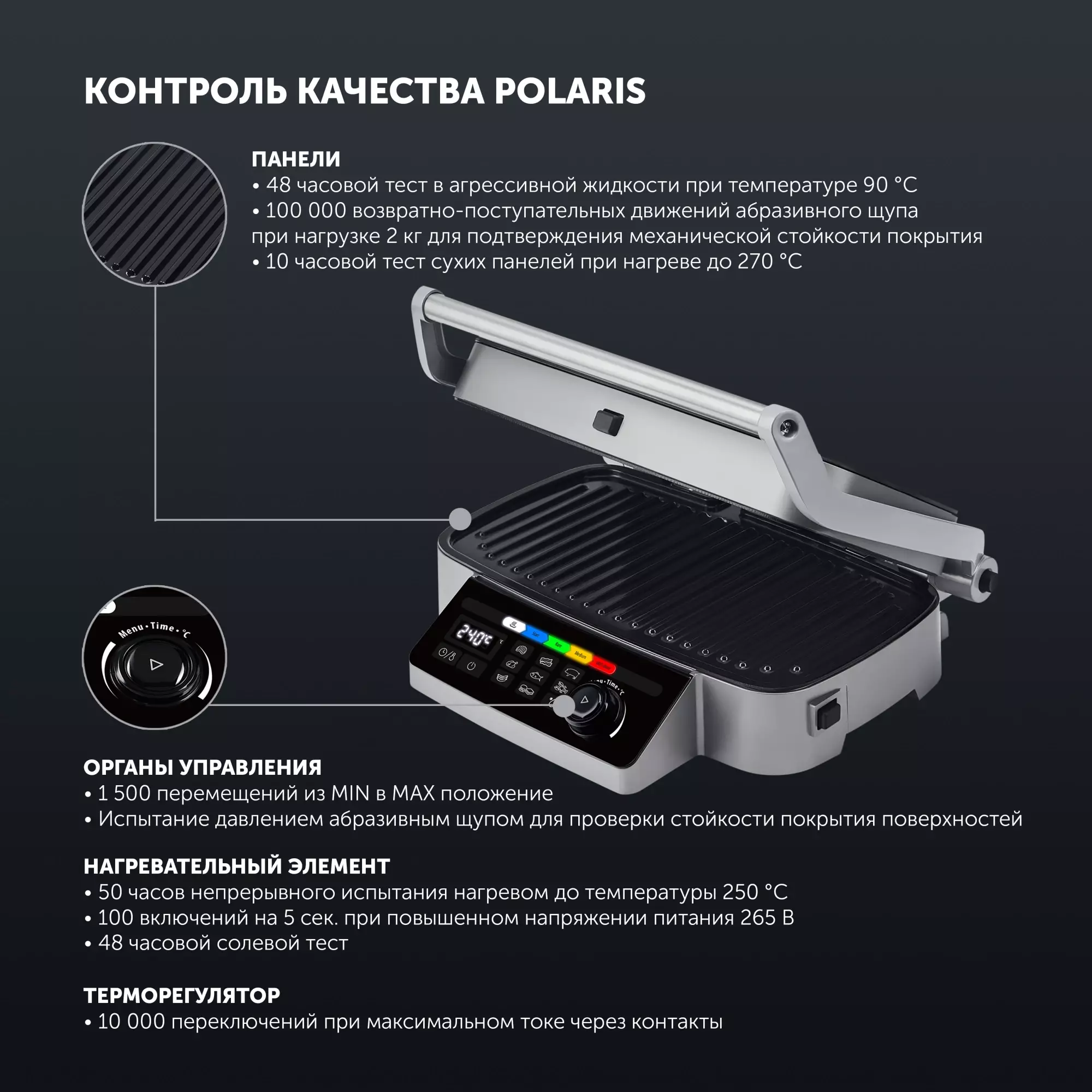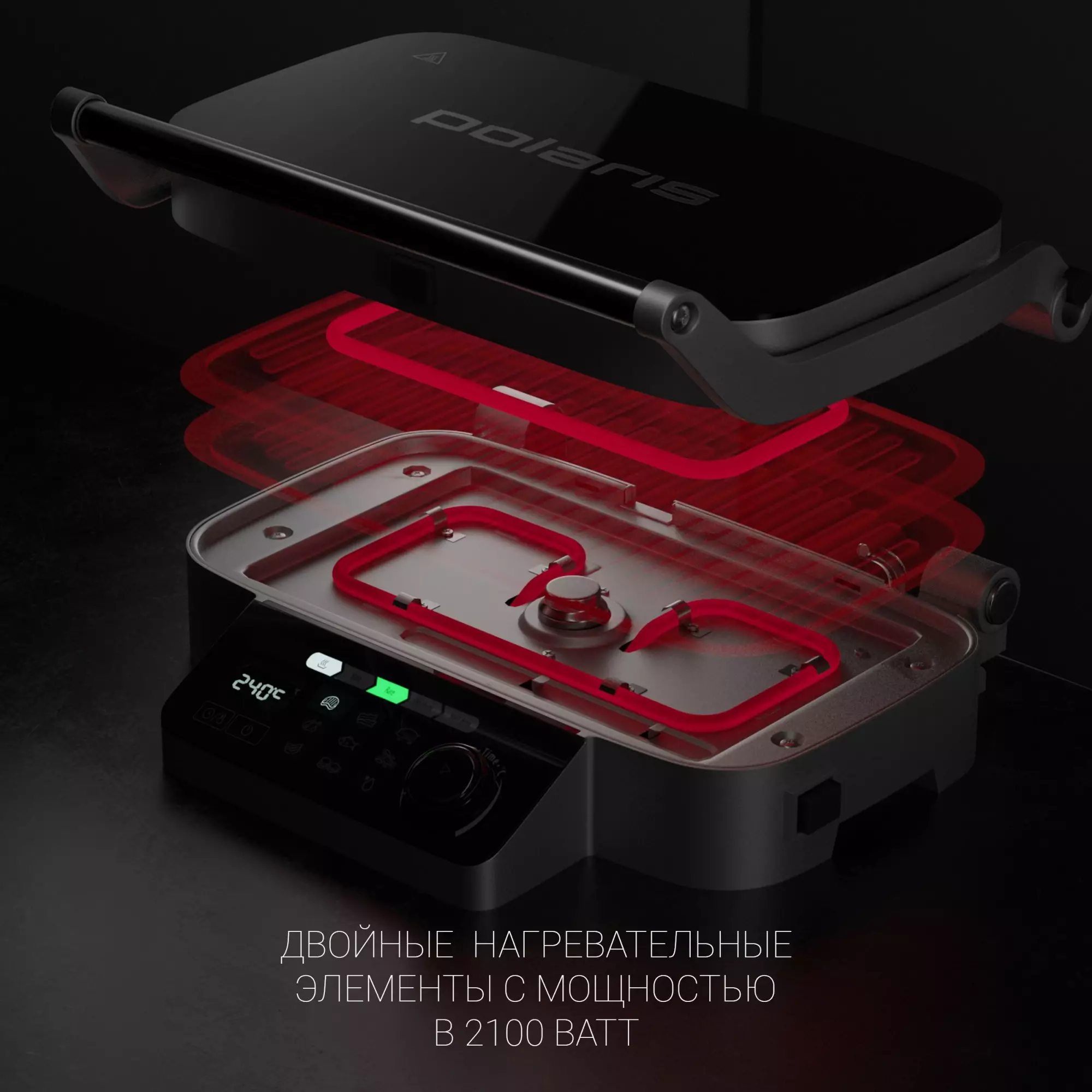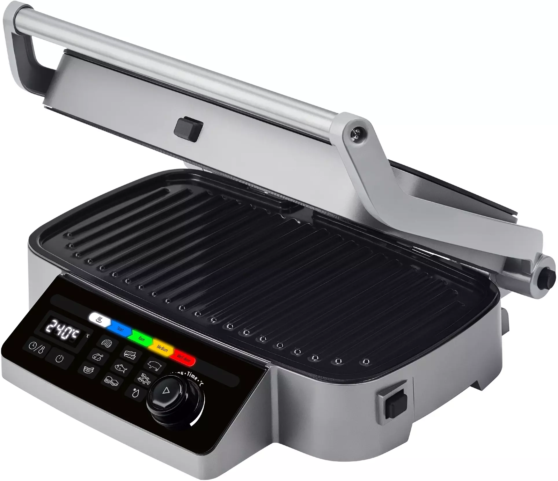 ОписаниеТехнология Optimal Temp - автоматическое определение толщины продукта, идеальный результат одним нажатием кнопки. 9 автоматических программ. 3 степени прожарки: RARE, MEDIUM, WELL DONE.