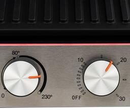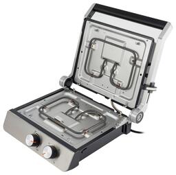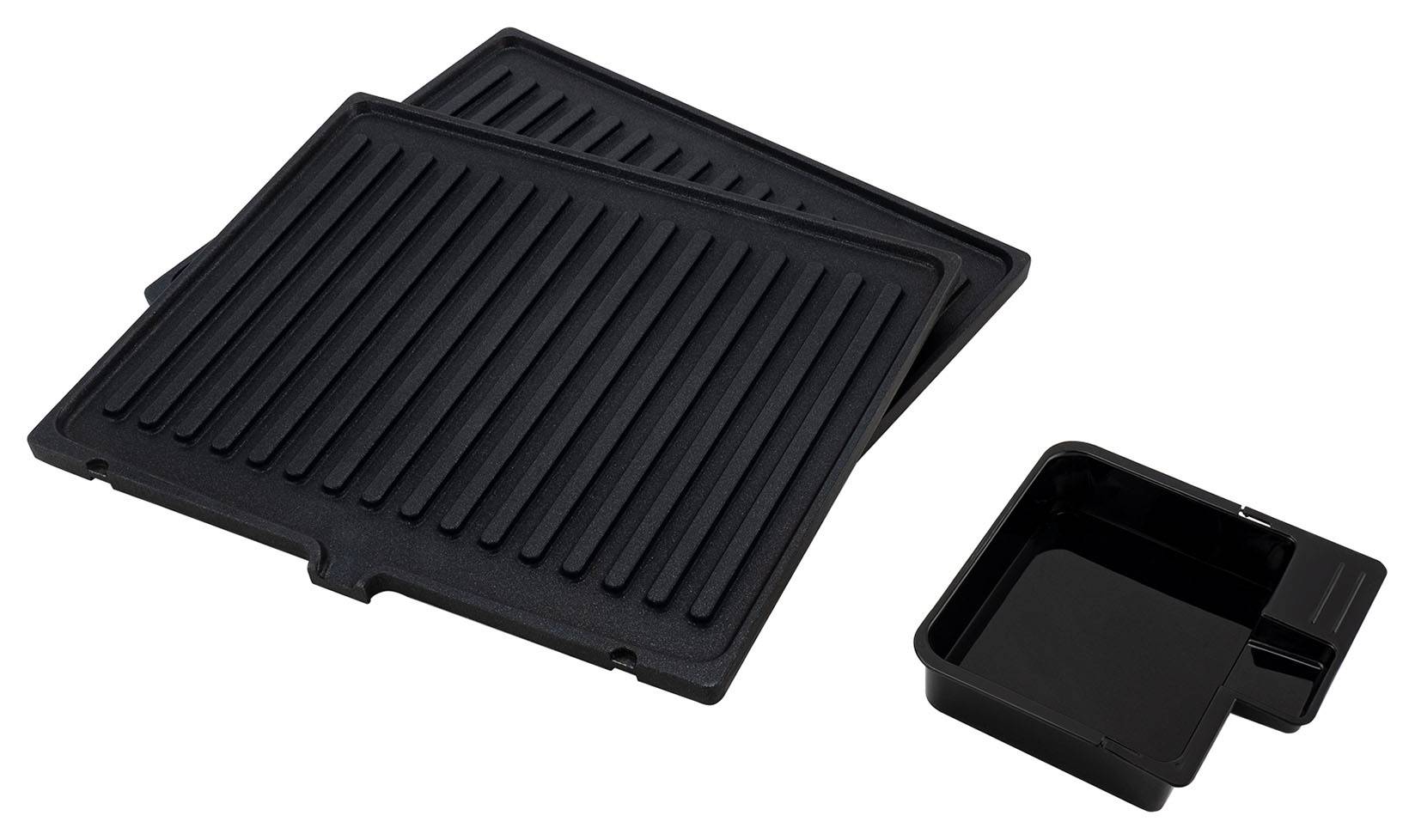ОписаниеС помощью электрогриля можно приготовить мясо, рыбу, бутерброды, сэндвичи, тосты, овощи и многое другое. Ребристая поверхность и высокая температура панелей способствуют быстрому приготовлению и проявлению характерного «полосатого» рисунка на продуктах.