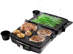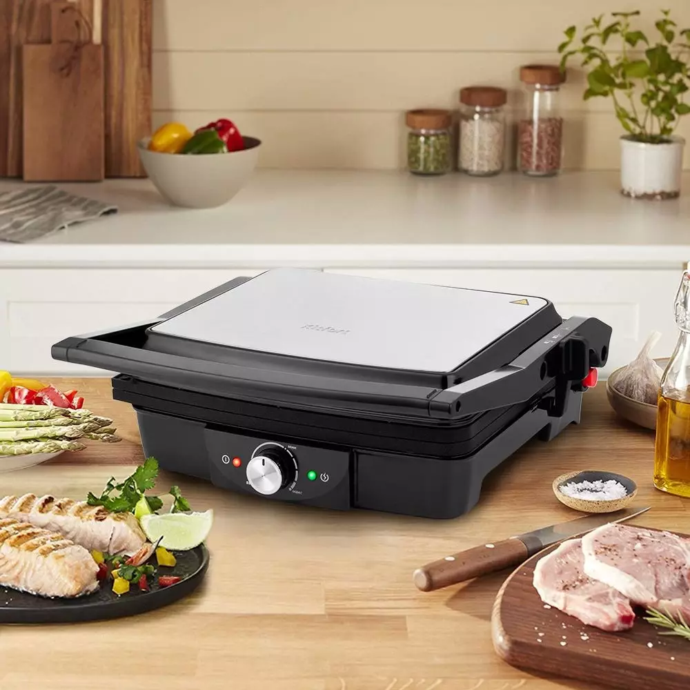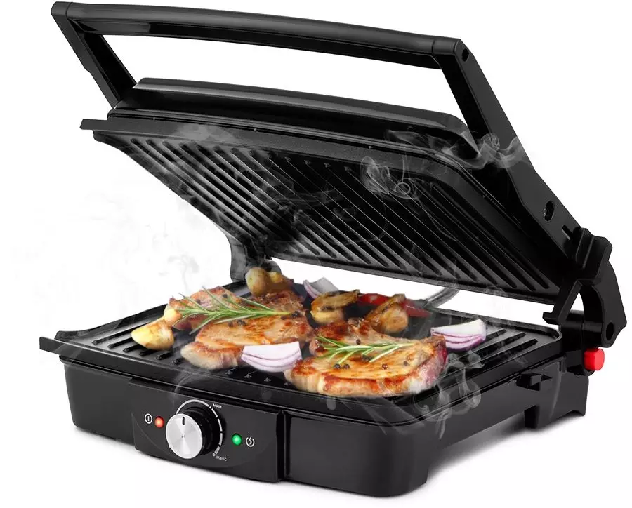 ОписаниеЭлектрогриль КТ-1656 предназначен для приготовления мяса, рыбы, овощей, сосисок, бутербродов, панини, сэндвичей, гренок, тостов и многих других блюд. Высокая температура способствует быстрому приготовлению продуктов, а ребристая поверхность — появлению на них характерного «полосатого» рисунка.