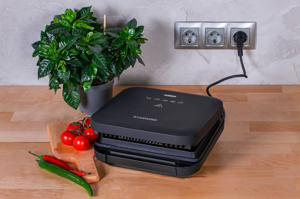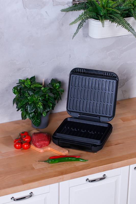 ОписаниеКомпактная модель электрогриля, выполненная из качественных и прочных материалов. Имеет простую конструкцию и удобное использование. Черный цвет модели будет хорошо сочетаться с любым интерьером. С его помощью можно будет приготовить стейки из мяса, поджарить овощи или рыбу,