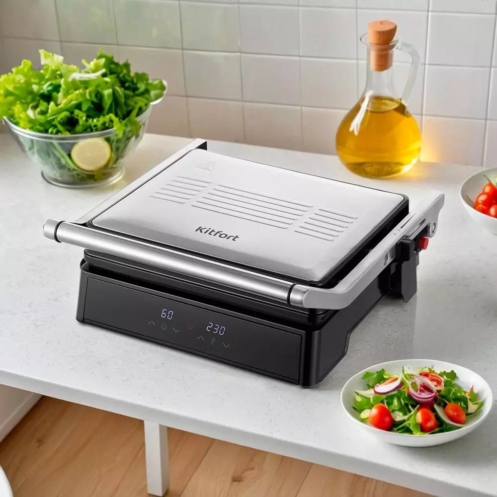 Электрогриль Kitfort КТ-3664 серебристый/черный