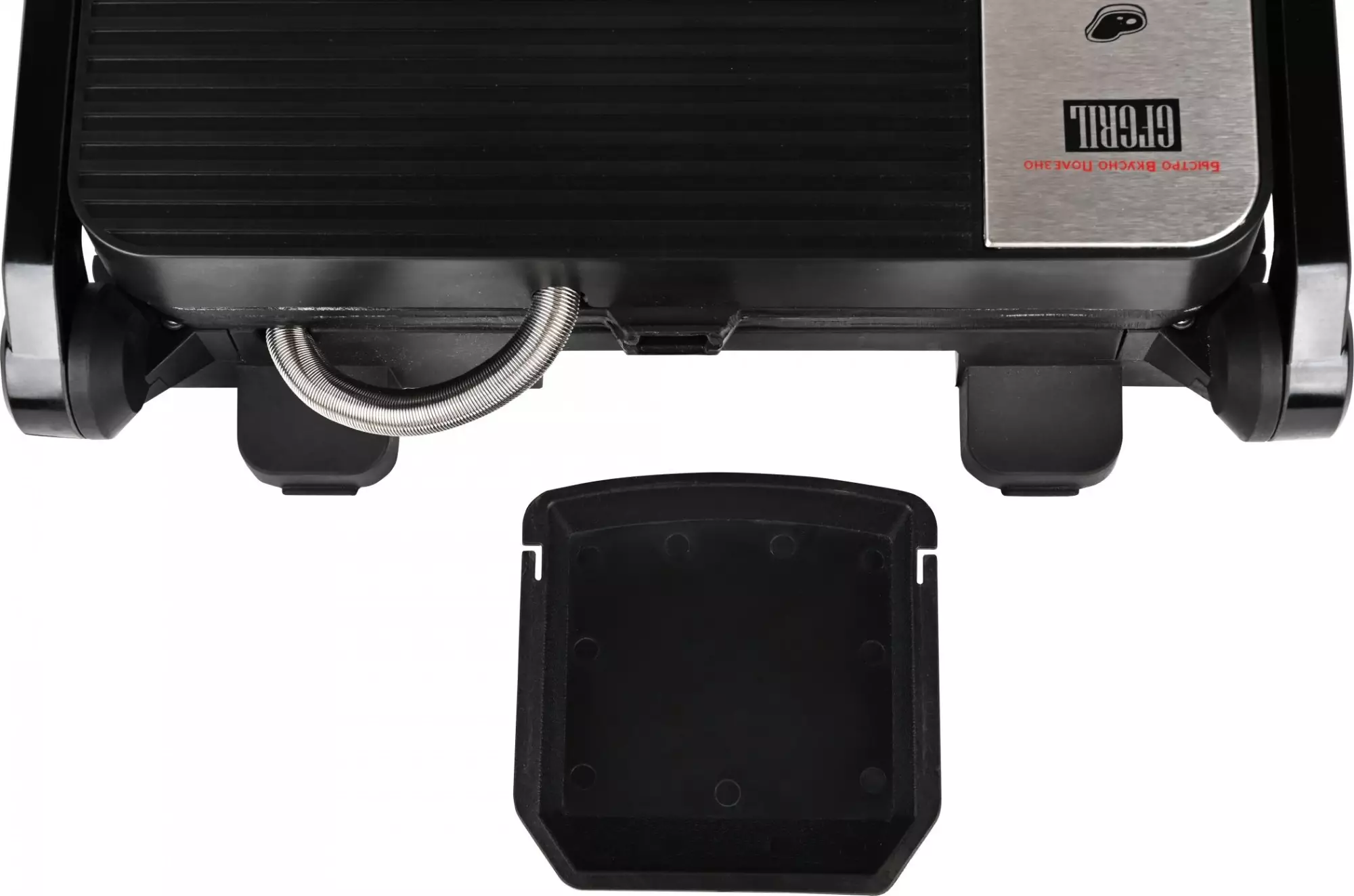 ОсобенностиАнтипригарное покрытие панелей позволит готовить любимые блюда без добавления масла, а лишний жир, который вытапливается из продуктов во время приготовления, стекает по бороздкам панелей в специальный съемный лоток, который крепится в нижней части гриля.