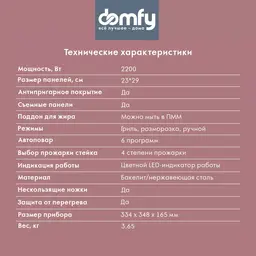 Электрогриль Domfy Metal DSM-EG703 серебристый/черный