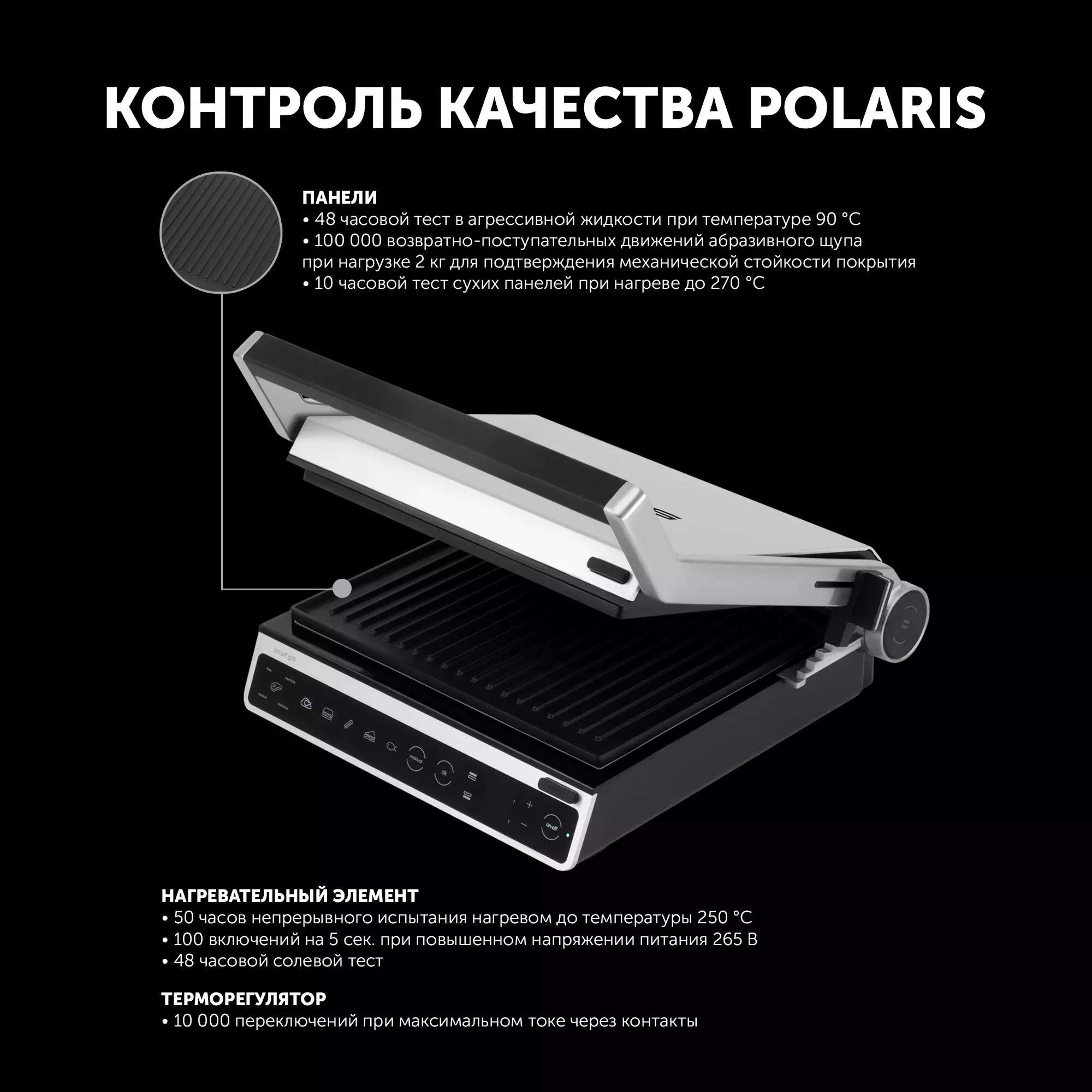 Электрогриль Polaris PGP 3003 серебристый/черный