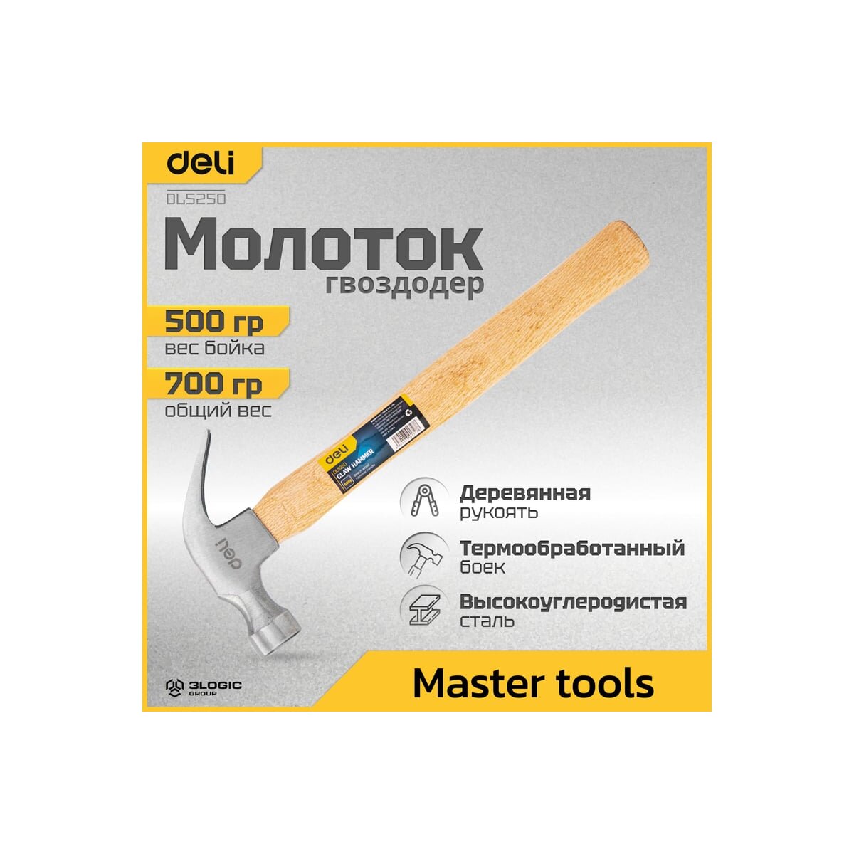 Молоток-гвоздодер Deli DL5250 500 гр деревянная рукоять